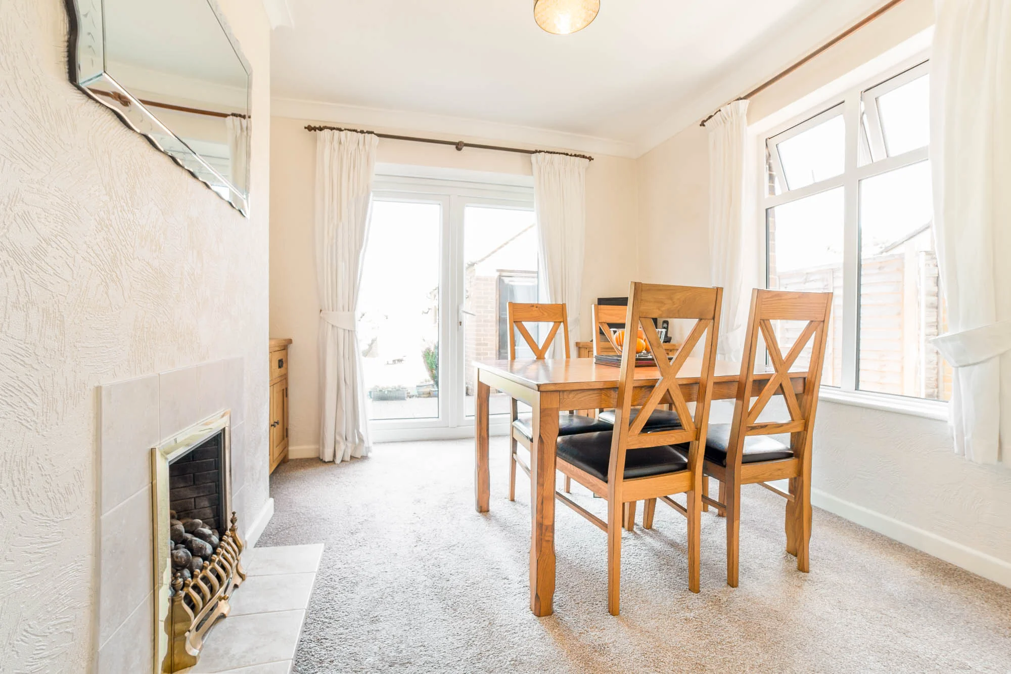 The lounge runs along the front of the property and has a huge front aspect that provides a very light, bright room throughout the day. The room is large enough for sofas and living room furniture and even a place for the family budgerigar. This room is also complemented with a feature fireplace as well as having gas central heating throughout the property.
