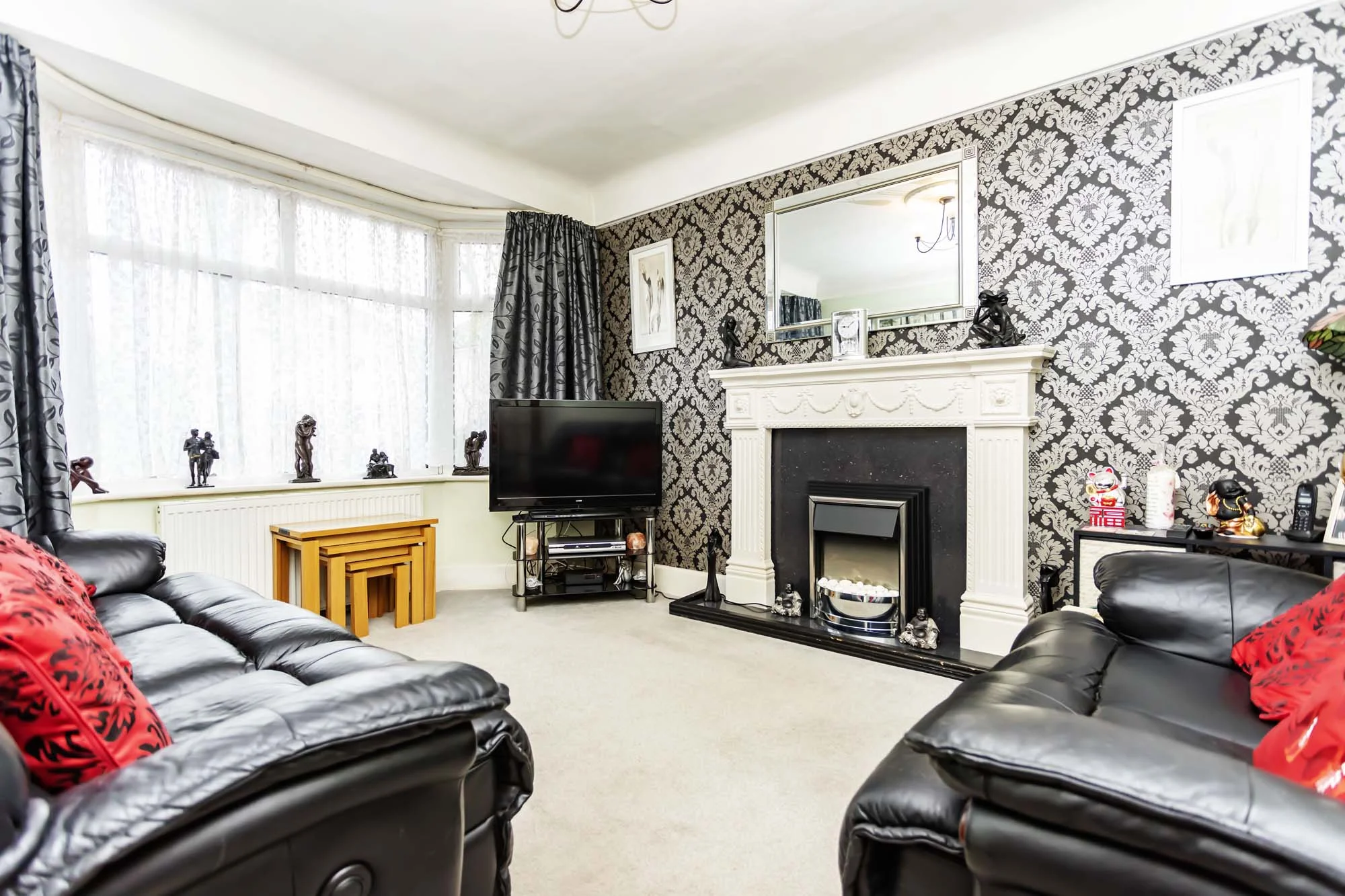 On the left at the front of the property is the lounge with distinctive 1930s character in abundance, with the high ceilings still supporting the Dorset curve, a large bay window and deep coving around the room. Another feature is the ornate fireplace surround set perfectly in this good sized room. There is plenty of space for the large sofa and entertainment equipment.