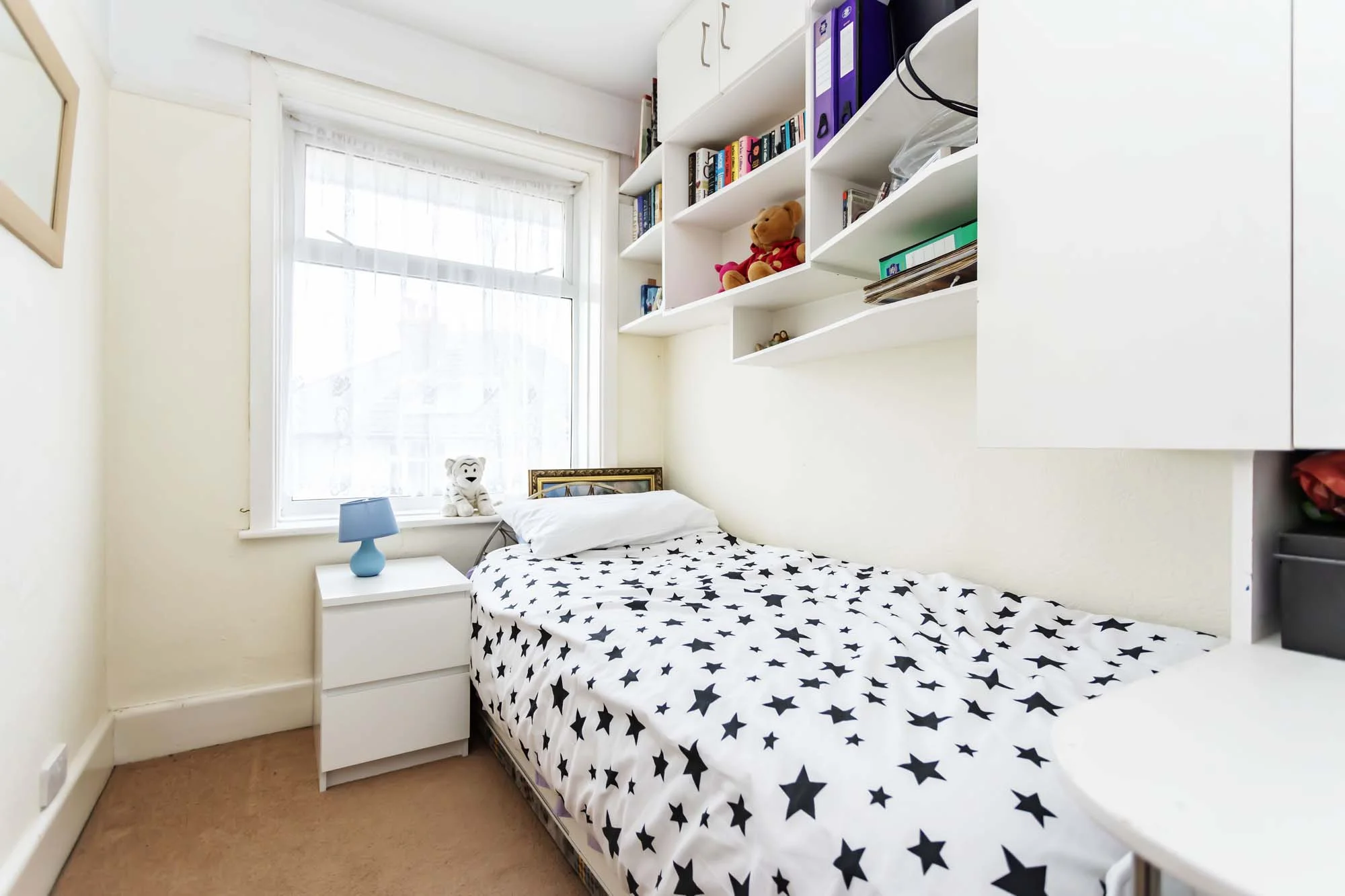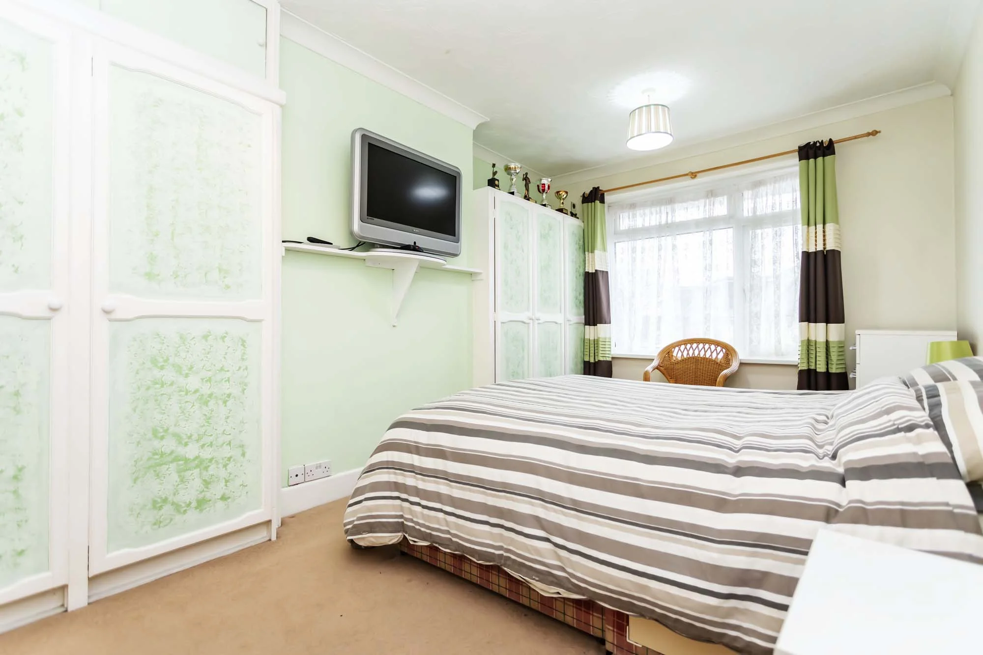 As you ascend to the first floor the traditional high ceilings continue, upstairs there are three bedrooms and a family bathroom. The Master is at the front of the property benefiting from a large bay window and generous fitted wardrobes along one wall. Bedroom two is a very good size with views across the rear of the property and fitted wardrobes either side of the chimney stack. A great advantage of this property is the size of the third bedroom which is a large single and also gives ample space for storage. The bedrooms are all serviced by a family sized bathroom with shower over bath, basin and W.C. The access to the loft is also in the bathroom, partially boarded with good insulation levels and a loft ladder attached.