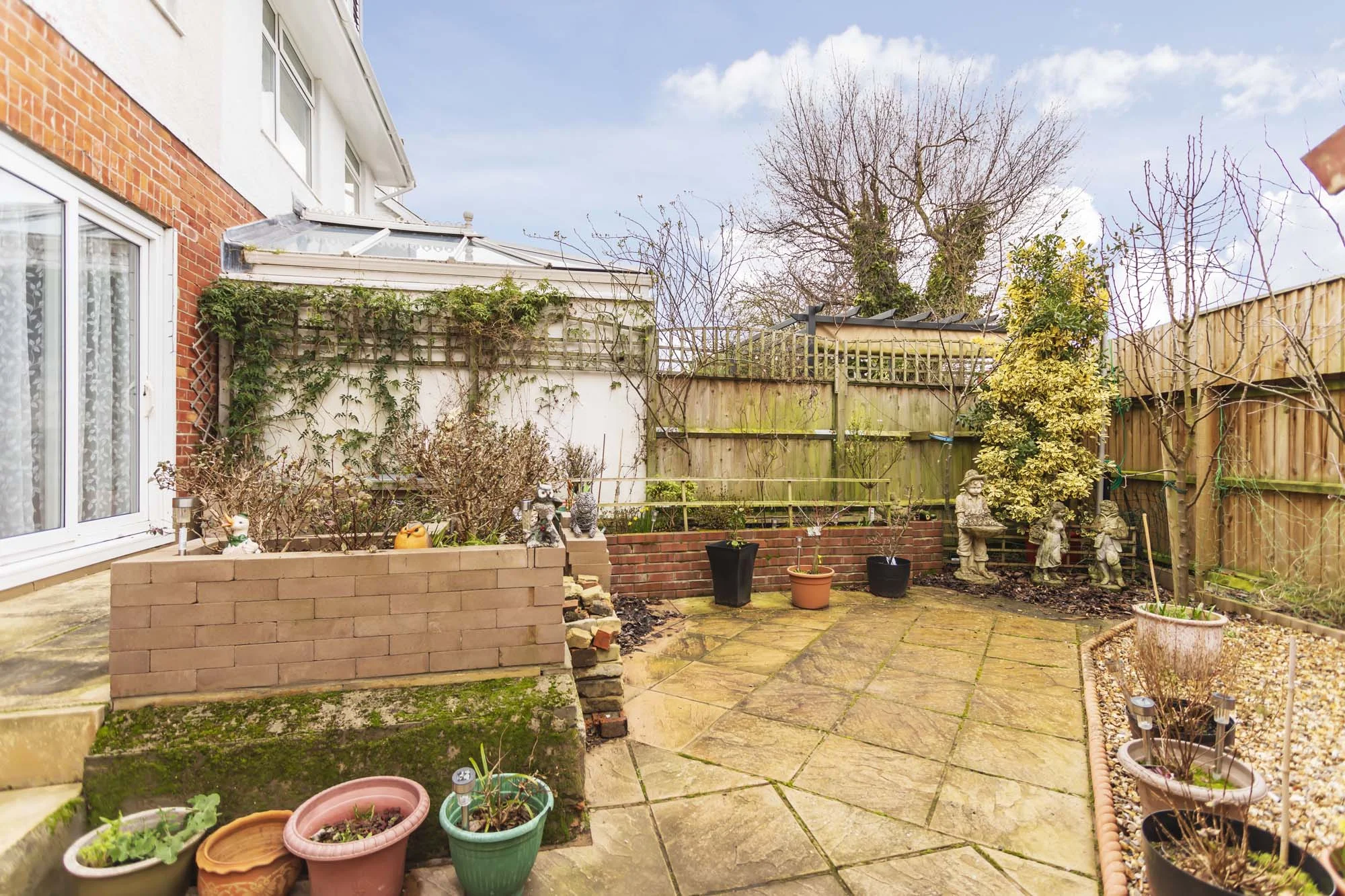 The garden is of a southerly aspect so lots of sunshine throughout the day. Currently set up as a low maintenance space with patio and shingle, the raised patio area leads back up into the dining room. The garden has ample space for alfresco dining and family BBQ's and with Iford field seconds away if you do want to refine your goal kicks there is plenty of scope. The mature garden consists of raised bedding areas and a large shed which could be reconfigured as desired to open up the space.